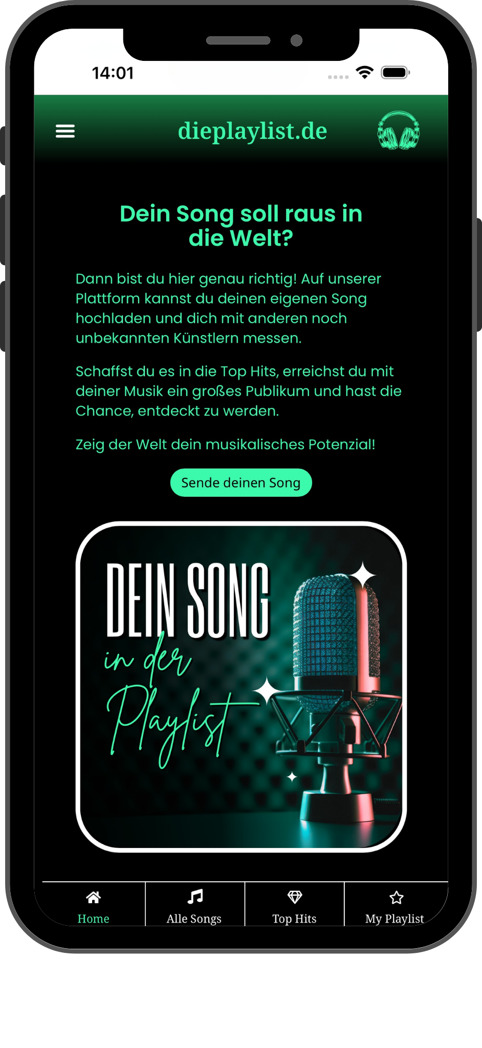 Hier erlebst du nicht nur neue Musik! Finde deine persönlichen Favoriten und unterstütze sie dabei, in diePlaylist-Charts aufzusteigen.